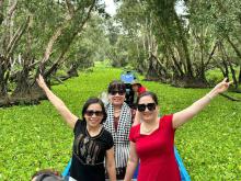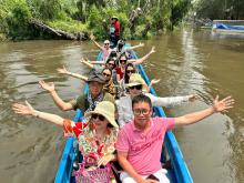 Đến Mỹ Tho, Đoàn di chuyển ra bến tàu Du lịch Sinh Thái Mỹ Tho, lên thuyền bắt đầu ngắm cảnh 4 cồn: Long, Lân, Qui, Phụng: