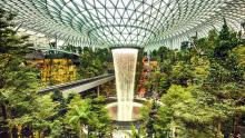 -    Jewel Changi có hình dáng bề ngoài như một chiếc bánh donut ấn tượng. Được đóng khung bằng thép và kính. Khu Jewel Changi được thiết kế bởi kiến trúc sư người Canada gốc Israel Moshe Safdie. Ông cũng là người thiết kế khu nghỉ dưỡng Marina Bay Sands